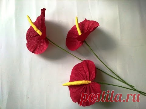 DIY - craft tutorial How to make paper flower - Anthuriums - Làm hoa hồng môn giấy nhún
