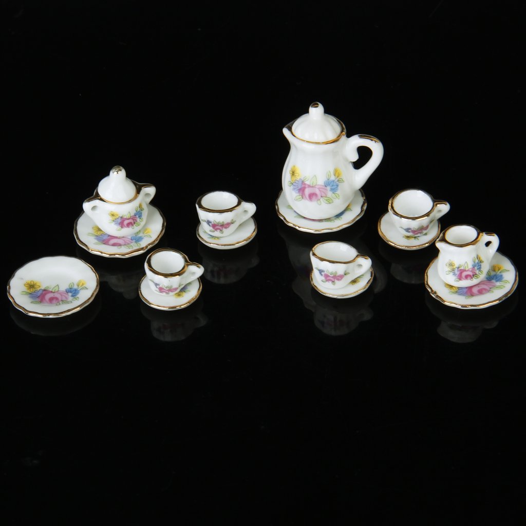 ABWE 15 Шт. Миниатюрный Dollhouse Посуда Фарфор Чайный Сервиз Посуда Кружка Тарелка с Цветочным Узором купить на AliExpress