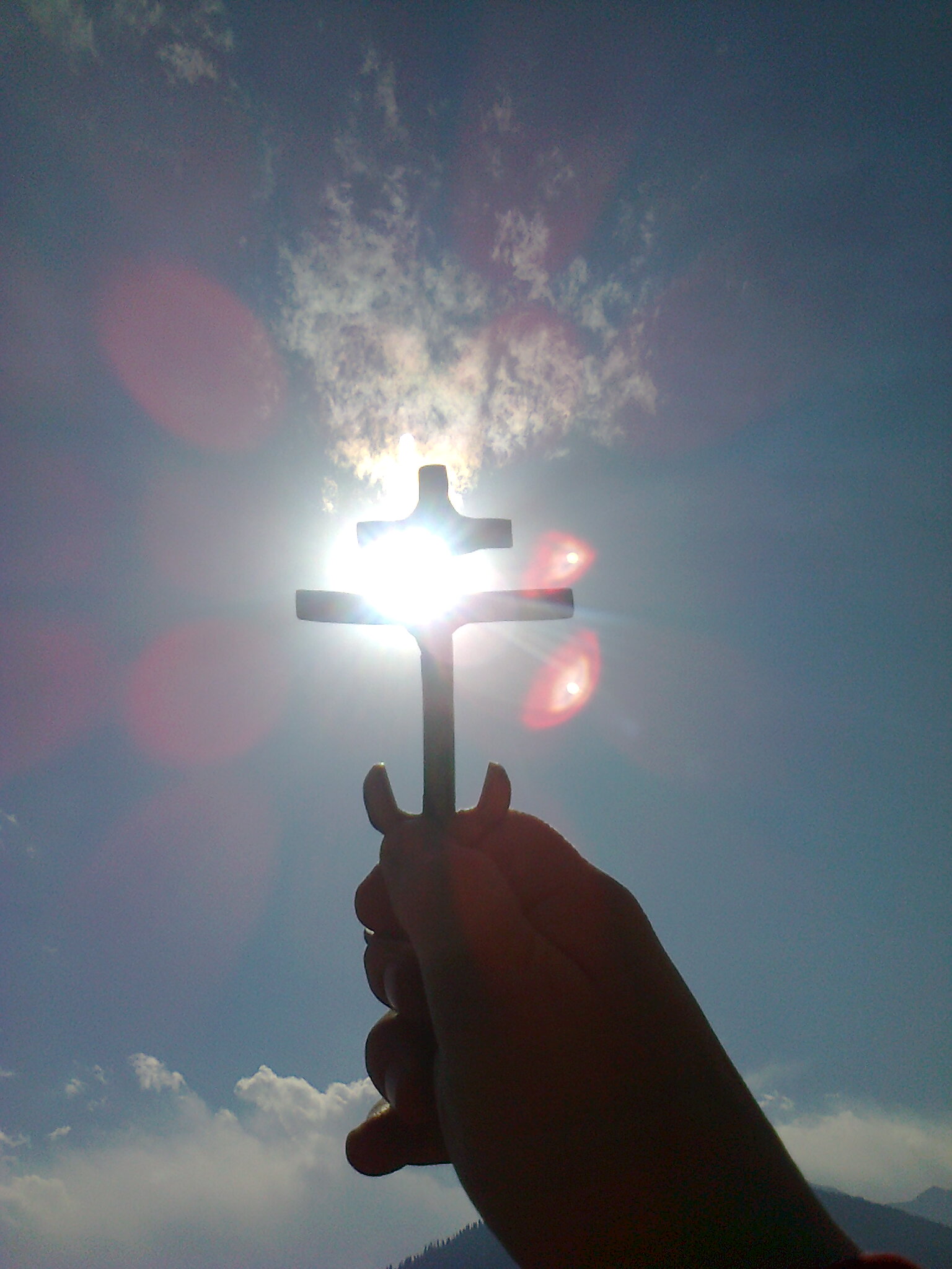 ТриЕдину! Аллилуиа! над Крестом соборным (где и полумесяц во Кресте)- образ левой Ладони ЕЯ, составленный из перистых облаков,...,...зафиксировано средствами объективнаго контроля в Аксайском ущелье Свято-Серафимо-Феогностова мужского монастыря, г. Верный(Алматы, Алма-АТА)