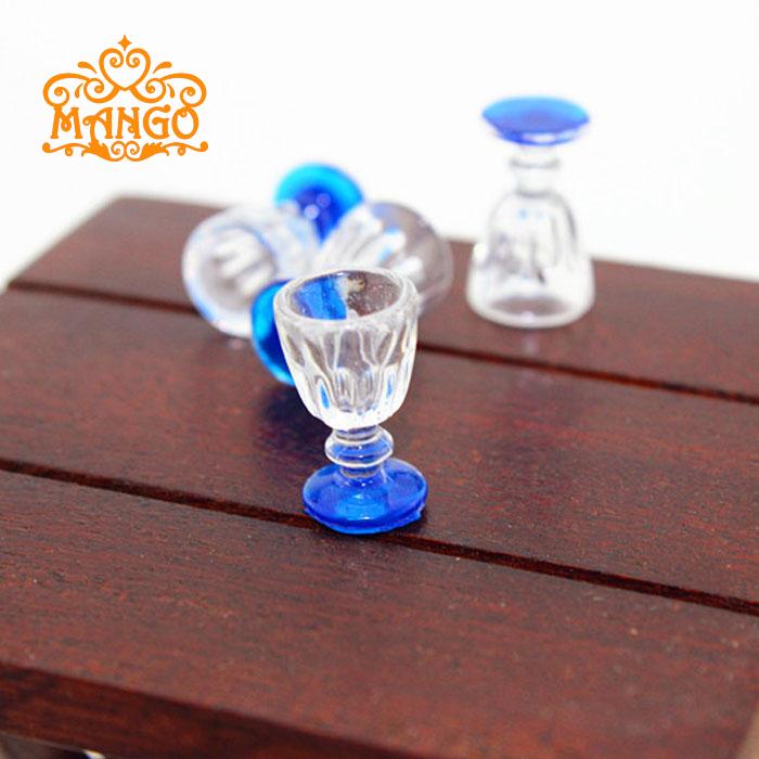 Бесплатная доставка! 1/12 масштаб кукольный домик миниатюрная мебель прозрачной стеклянной синий фон чашки 4 шт. купить на AliExpress