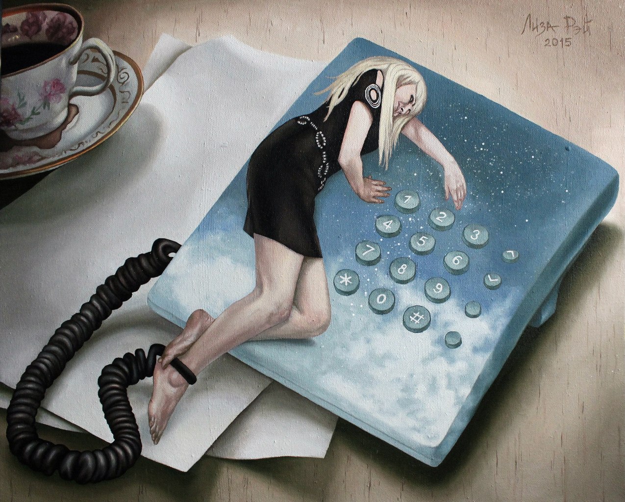 Лиза Рэй – Позвони мне. Liza Ray - Call me Х.м., 80Х65, 2015 oil on canvas Когда ждешь, все пространство вокруг становится пустым и не интересным. Ты сосредотачиваешься только на своем ожидании, которое тебя полностью поглощает. © Liza Ray