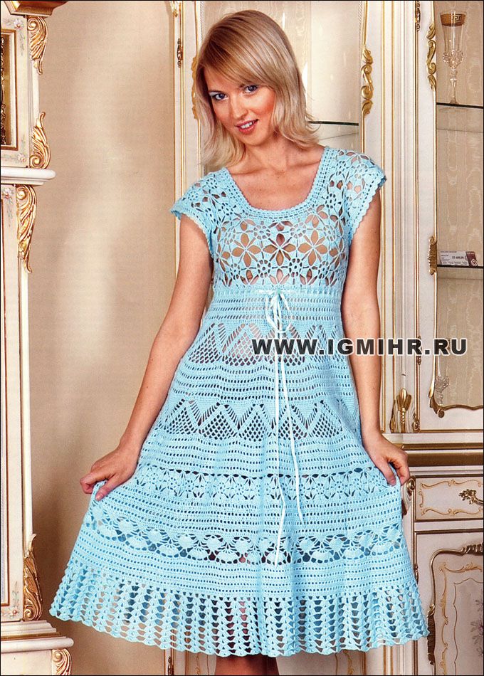 Готовимся к лету! Романтичное ажурное платье бирюзового цвета. Крючок.