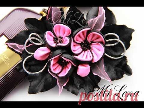 DIY Kanzashi flower hairclip / Заколка канзаши / Пошаговый мастер-класс /