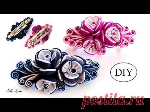 ЗАКОЛКА-АВТОМАТ КАНЗАШИ, МК / DIYKanzashi Flower Hairclip / Kanzashi Tutorial