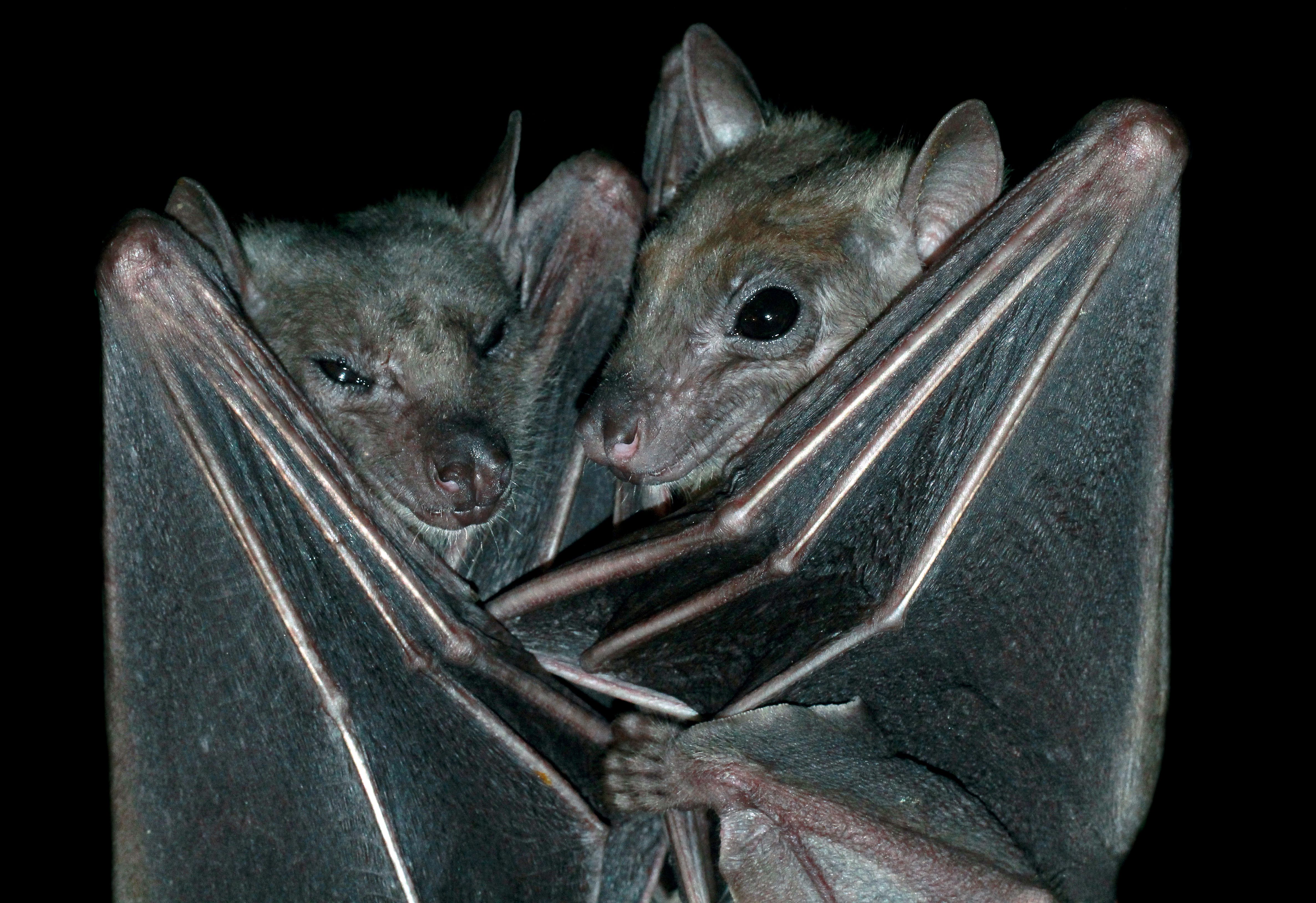 Летучие лисички. Вообще-то они висят вверх ногами,зацепившись когтями за ветку. Картинка перевернута для удобства просмотра.