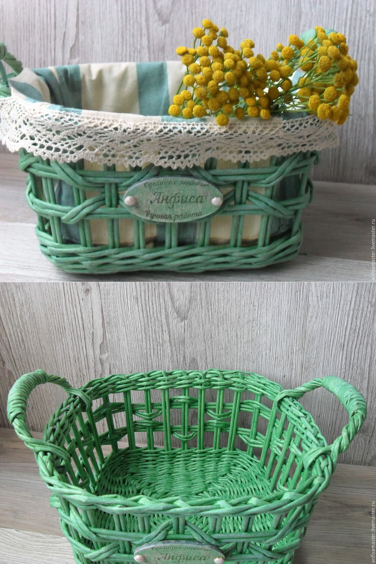 Купить Корзина плетеная зеленая из серии Вереница дней - плетение из бумаги, плетеная корзина