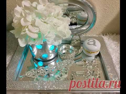 Silver Vanity Tray with Rhinestones DIY - YouTube