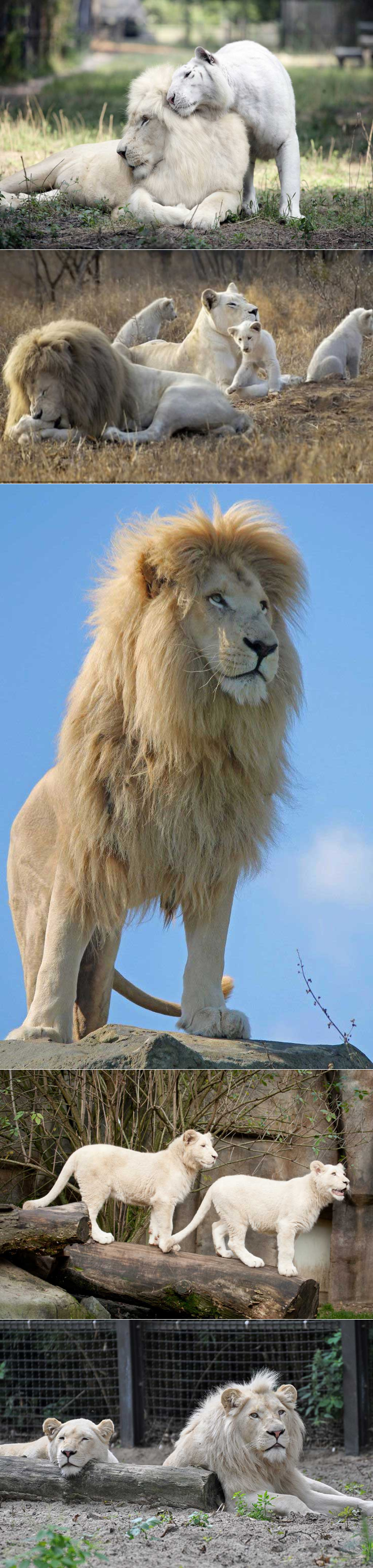 Белый лев Научно доказано, что белые львы не являются альбиносами. Встречаются белые львы, как с небесно-голубыми, так и с золотым отливом глазами. Отсутствие пигментации в цвете кожи и шерсти говорит о недостатке специального гена.