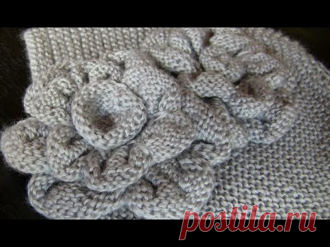 Вязаные цветы спицами: 3 видео. Вязаные цветочки к шапочке спицами. Вязаные цветы спицами