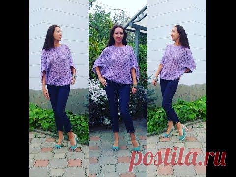 Как вязать спицами ажурный джемпер "квадрат". Бесплатный МК
