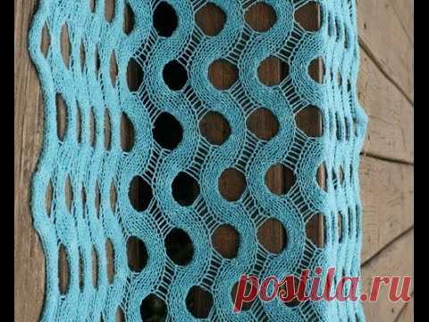 Шарф "Крупная сетка" спицами. Видео + описание на англ. языке