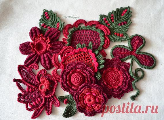 Irish crochet Marsala Cherry Dress Application Decor Collar