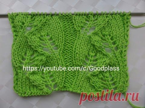 Узор Ажурные листья вязание спицами. Knitting(Hobby).
