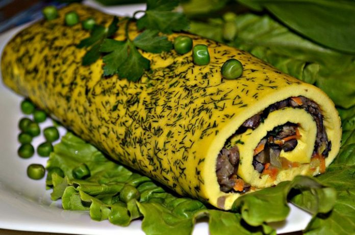 Рулет из омлета с грибами. Сытный и полезный завтрак или перекус!