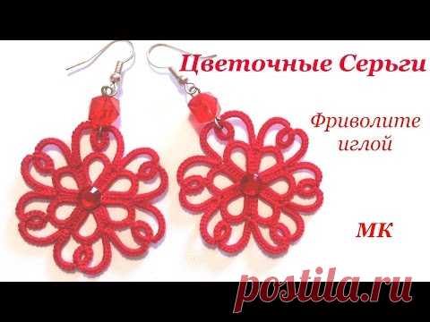 Кружевные цветочные серьги фриволите иглой Видео урок для начинающих. lace frivolite earrings needle