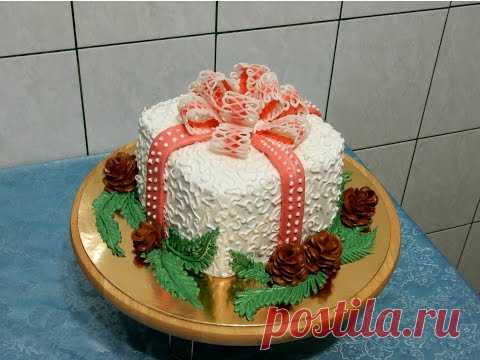 УКРАШЕНИЕ ТОРТОВ КРЕМОМ- Торт "ПОДАРОК", cake decoration