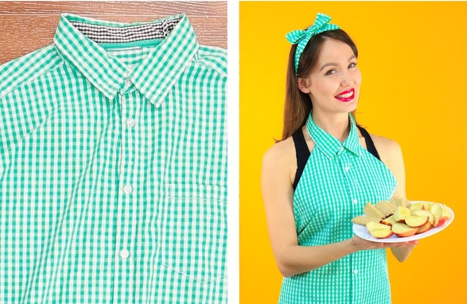 Как сделать стильный фартук из старой рубашки | Милая Я Наверняка у каждого дома есть стопка вещей, которые носить по каким-то причинам уже нельзя, а выбросить – жалко. Если у вас сжимается сердце при мысли о том, чтобы распрощаться со старой вещью, предлагаем вам переделать ее! В этом видео мы покажем, как из рубашки сделать стильный фартук! Все, что вам нужно, — это аккуратно отрезать рукава и плечи и отпороть спинку рубашки. Из остатков ткани делаем завязочки и аккуратн...