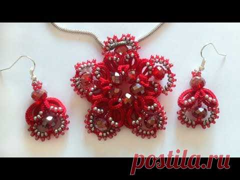 Серьги Яблочки фриволите иглой, анкарс. Видео урок для начинающих. Earrings Apples frivolite needle