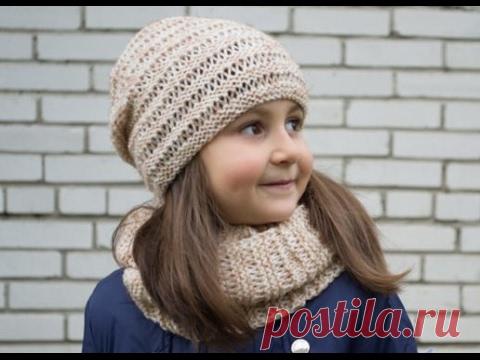 Шапка спицами"Волны"-Women's cap spokes "Waves"#Шапочка_на весну-осень. Вязание для начинающих