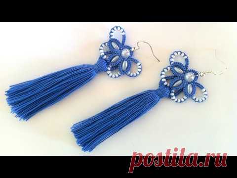 Серьги кисточки фриволите иглой, анкарс. МК для начинающих. DIY Earrings tassels to frivolite needle