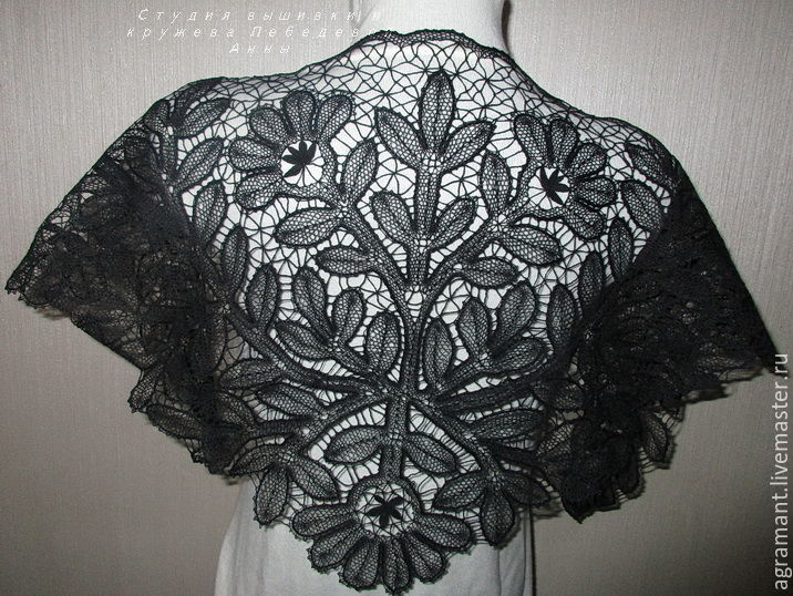 Купить Косынка "Древо Жизни" черная Елецкое кружево - черный, елецкое кружево, кружево на коклюшках
