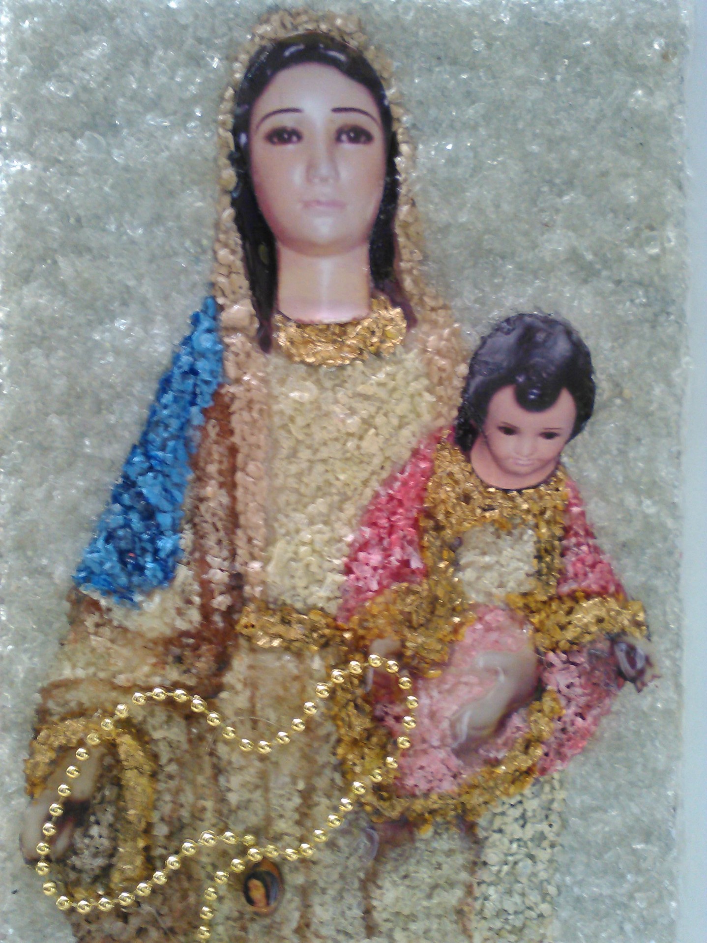 VIRGEN DE GUARNE Imagen decorada completamente con cristales, pigmentados.