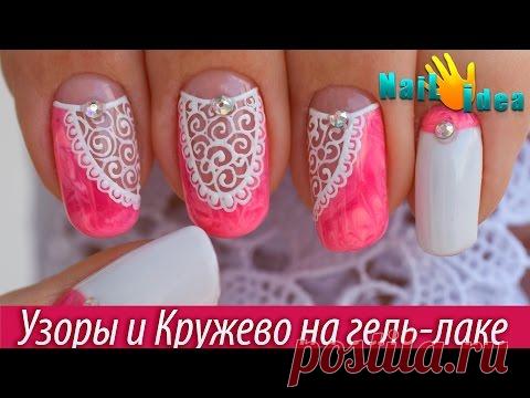 МРАМОРНЫЙ шеллак маникюр с КРУЖЕВОМ "Розовые Грезы" | Дизайн гелевых ногтей УЗОРЫ на ногтях пошагово