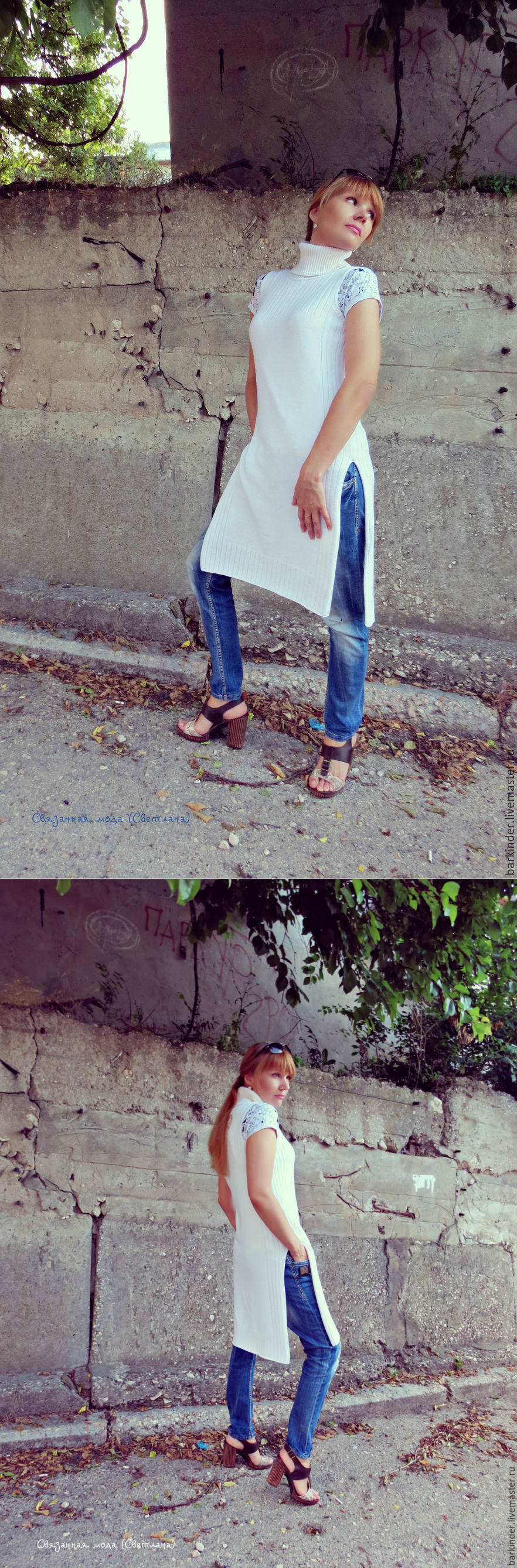Купить Вязаный удлинённый жилет- туника "Блаженство" - белый, однотонный, вязание на заказ, женская одежда