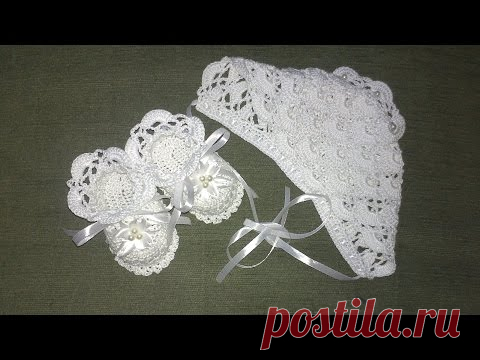 Шапка крестильная.Шапка вязаная крючком+детская шапка.Схема вязания ажурной шапочки крючком.
