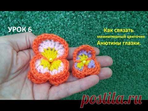Crochet pansy Как вязать миниатюрный цветочек анютины глазки крючком/ Вязаные цветы. Для начинающих.