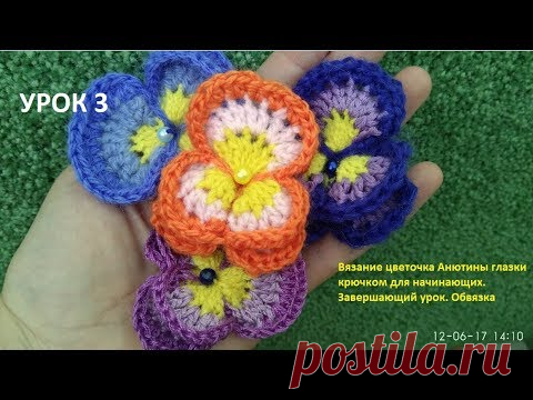 Crochet pansy/ Как связать крючком цветочек Анютины глазки/ для начинающих.