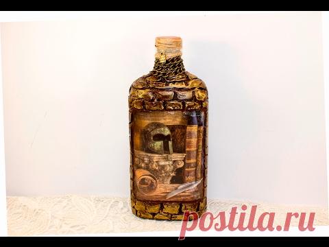 DIY decoupage bottles tutorial lesson for begginners glass bottle gift for him