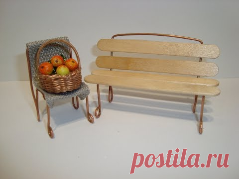 Миниатюрные скамейка и стульчик для композиций. // Miniature bench for compositions.