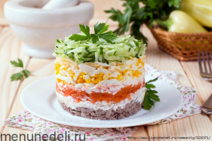 Слоеный салат с языком