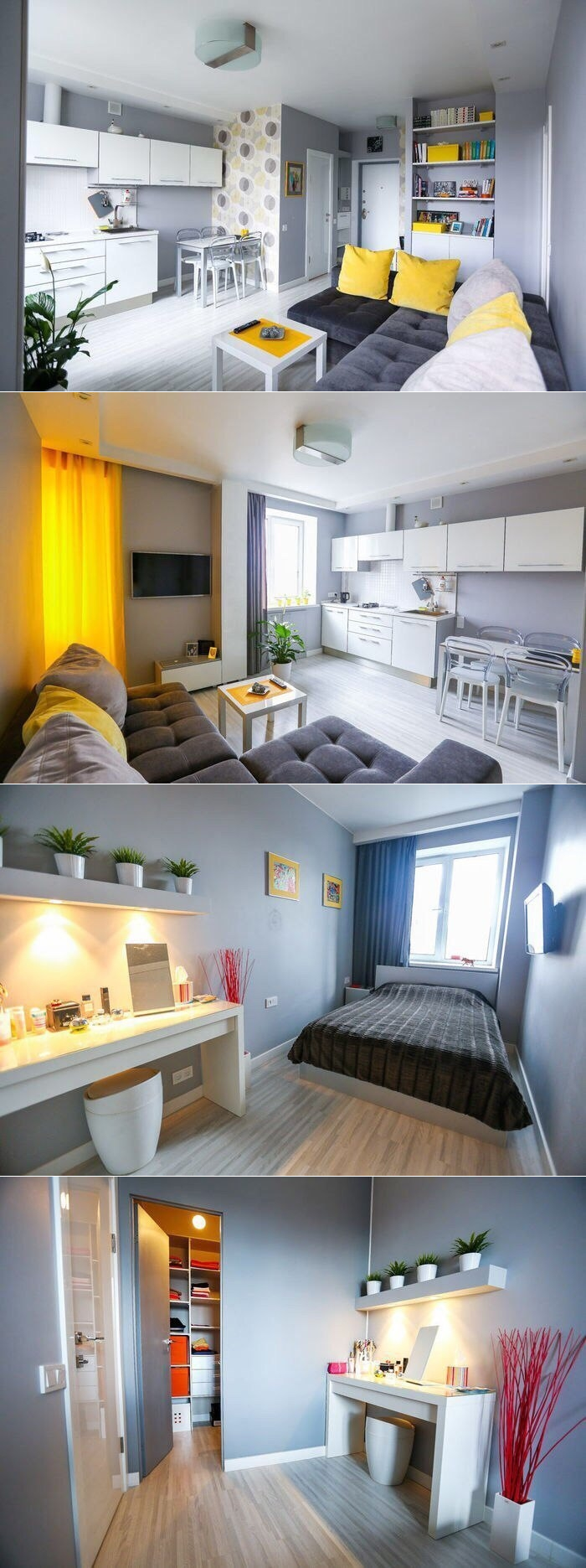 Однокомнатная квартира 35 кв.м. С яркими жёлтыми вкраплениями. - Дизайн интерьеров | Идеи вашего дома | Lodgers