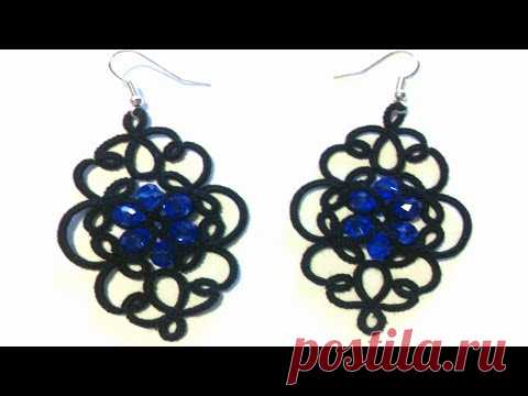 Вечерние серьги фриволите иглой с бусинами, Анкарс. Видео урок фриволите для начинающих
