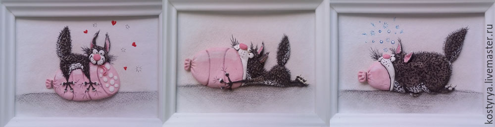 Лепим прикольный триптих «Кот и колбаса». Часть 1 - Ярмарка Мастеров - ручная работа, handmade
