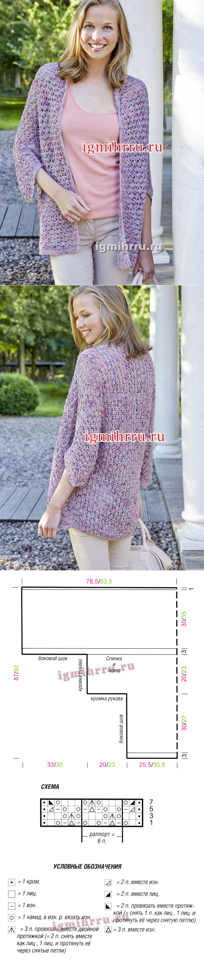 Легкий разноцветный жакет-накидка. Вязание спицами