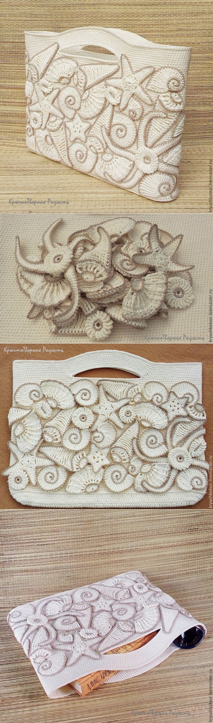 Вязание. Декорируем пляжную сумку вязаными ракушками и морскими звездами. Мастер-класс
