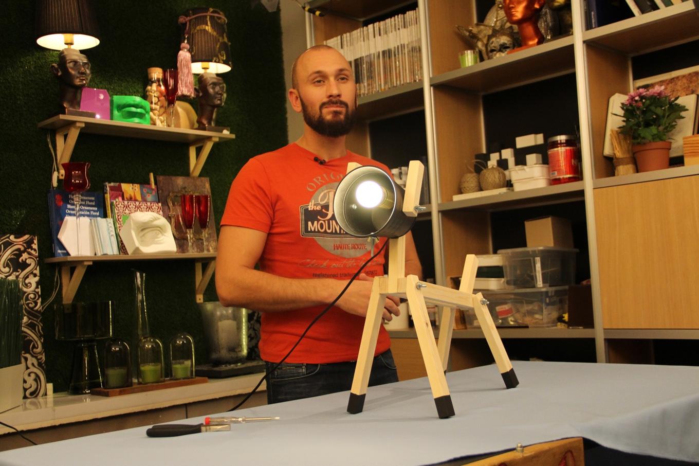 Необычный светильник-собака своими руками. Пошаговый мастер-класс от Сергея Трегубова Чтобы придать дому индивидуальность, нужно сделать в нем что-то своими руками. Дизайнер-декоратор Сергей Трегубов покажет, как всего из 6 болтов и деревянных брусков сделать необычный светильник в форме собаки.