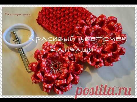 Красивый цветок канзаши/Beautiful Flower Kanzashi/Красива квітка канзаши/ Мастер-класс/D.I.Y