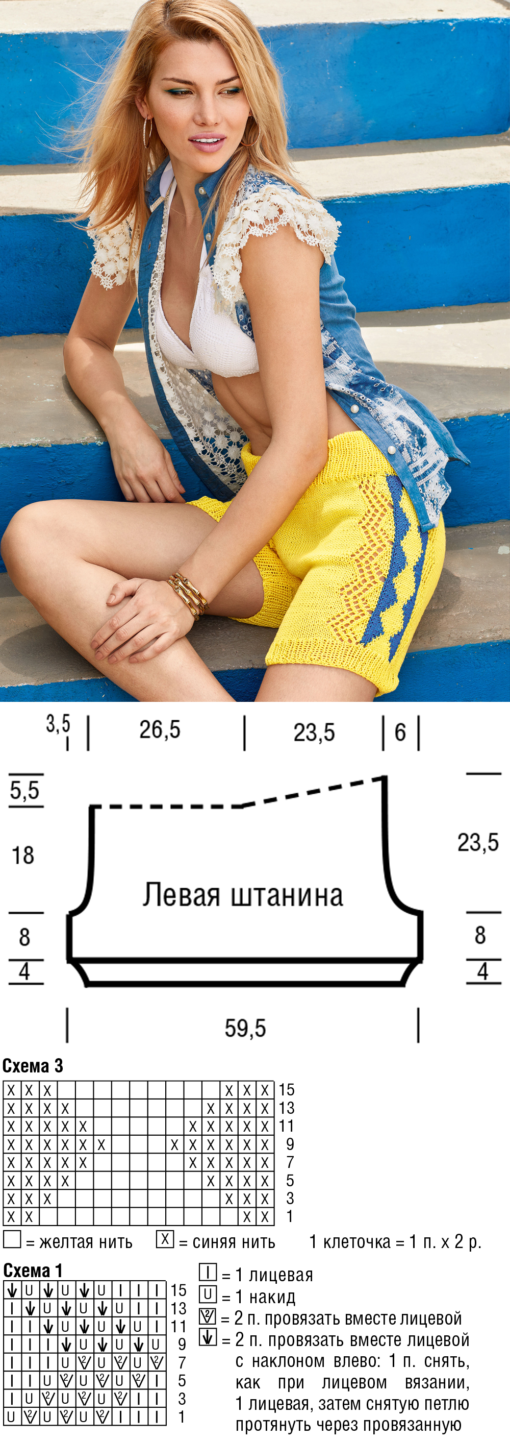 Шорты с лампасами - схема вязания спицами. Вяжем Брюки на Verena.ru