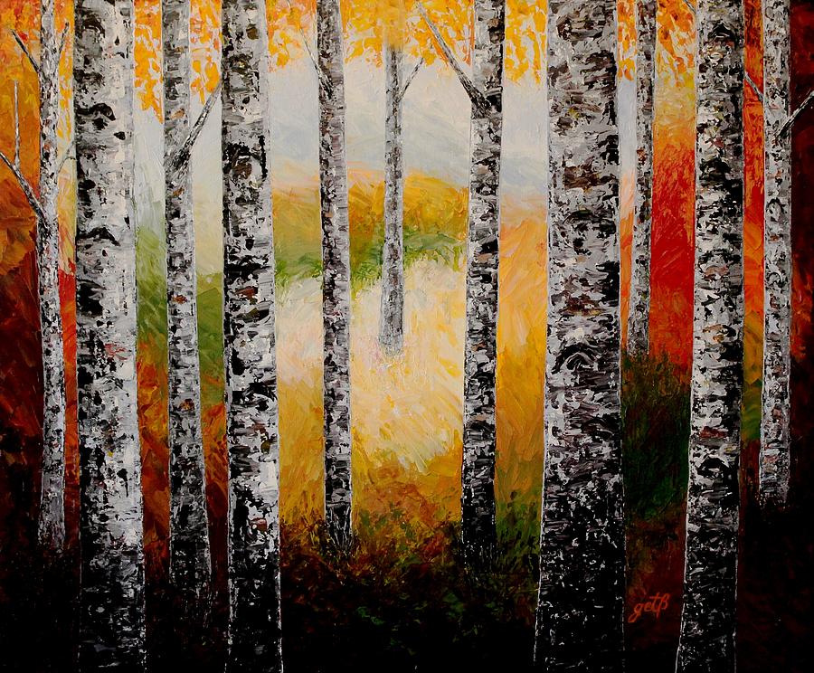 Осень березы лес нюх мастихином картина Жоржета Blanaru Осень березы лес нюх Живопись мастихином картина Жоржета Blanaru