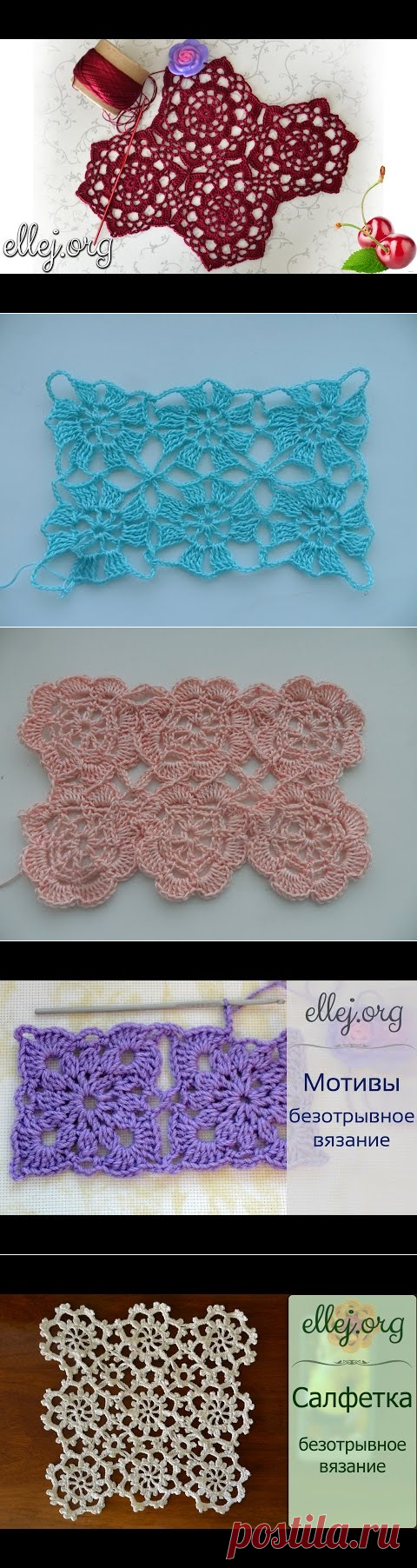 Безотрывное вязание крючком. Шестиугольный мотив Вишневая любовь - YouTube