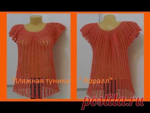 Пляжная туника " Коралл" (для начинающих).Crochet tunic ( В № 61)