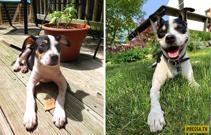 Сравнительные фотографии подросших домашних любимцев (21 фото) | Чёрт побери Тот, кто думает, что счастье нельзя купить, просто никогда не покупал себе щенка. Как только это это милейшее существо появляется в доме, жизни начинает играть яркими красками - то лужа на паркете, но любимая пара обуви погрызена. Но хозяева щенков и сами не замечают, как их питомец из пушистого комочка превращается в большую, добрую, преданную и умную собаку. 1. Прошло всего 6 месяцев, а какая ог...