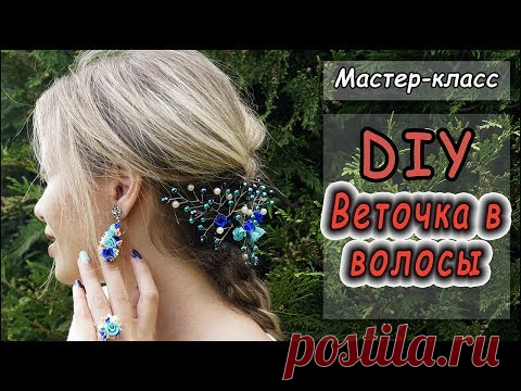 DIY Веточка в волосы своими руками на выпускной или свадьбу из полимерной глины, бусин и проволоки