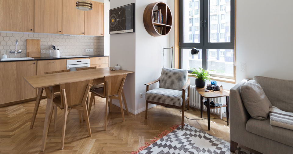 The Village показывает скандинавский интерьер для молодой пары с элементами mid-century. Свободная планировка позволила организовать кухню-гостиную, гардеробную-прачечную и найти место для трех велосипедов!