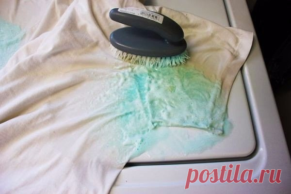Жёлтые пятна на воротничках и подмышках тоже уберём собственным средством. Состав: 1 чайная ложка жидкости для мытья посуды + 3 - 4 ч. л. перекиси водорода + 2 ст. ложки соды для выпечки. Смешать, втирать в пятно и удивляться эффекту!