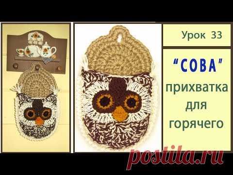 Прихватка крючком. Схема Сова Мастер Класс. Owl crochet. Урок 33